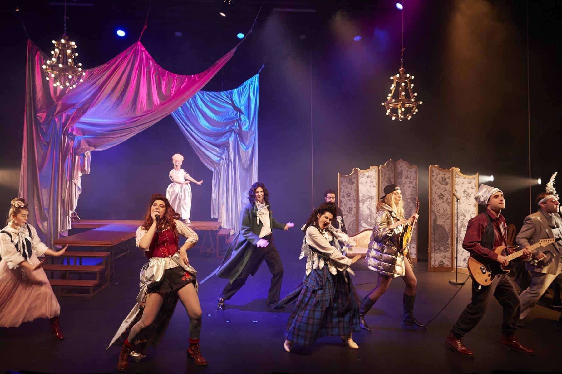 Olympe de Gouges était une femme libre et sans le savoir a posé les bases du féminisme. A travers la figure de cette héroïne, la pièce s’interroge sur le chemin de libération de la parole des femmes qu’elles soient artistes ou femmes politiques. Mettant tour à tour en scène des personnages grotesques, le portrait y est abordé dans une fresque enlevée, résolument contemporaine : langue connectée à aujourd’hui, musique jouée en direct et chansons incarnant une certaine idée de la parole féministe. Au-delà du sujet à vaste portée historique, c’est tout l’amour inconditionnel d’Olympe pour le théâtre qui transparait.